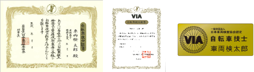 自転車技士の皆様は、 ご希望により、自転車技士証書及び自転車技士バッジをご購入いただけます。